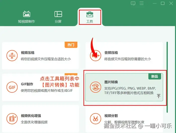 步骤1:运行该转换器,选择【工具箱】选项,点击工具箱列表中【图片转换】功能。