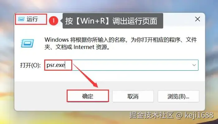 步骤1:按下 【Win+R】 组合键打开运行窗口,输入 【psr.exe】 并按回车即可打开步骤记录器。