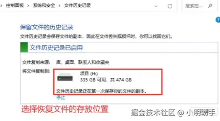 U盘文件恢复方法二:使用文件历史记录功能