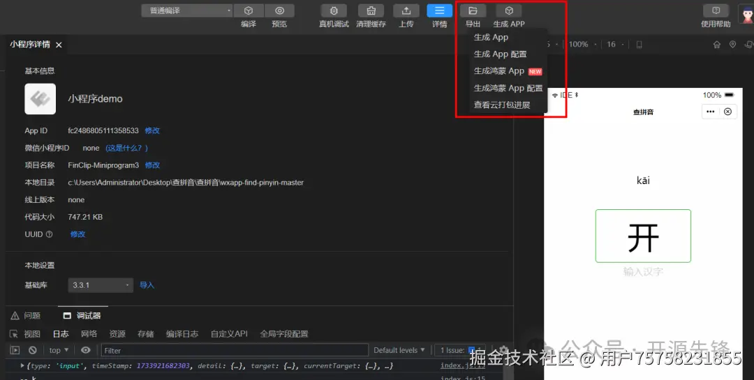 而且,这款IDE还支持小程序一键转换成App的功能,你可以将已有小程序代码导出为iOS与Android中可用的工程文件,并上架至各应用市场。这样,你就无需再为打包和上架问题而烦恼了。