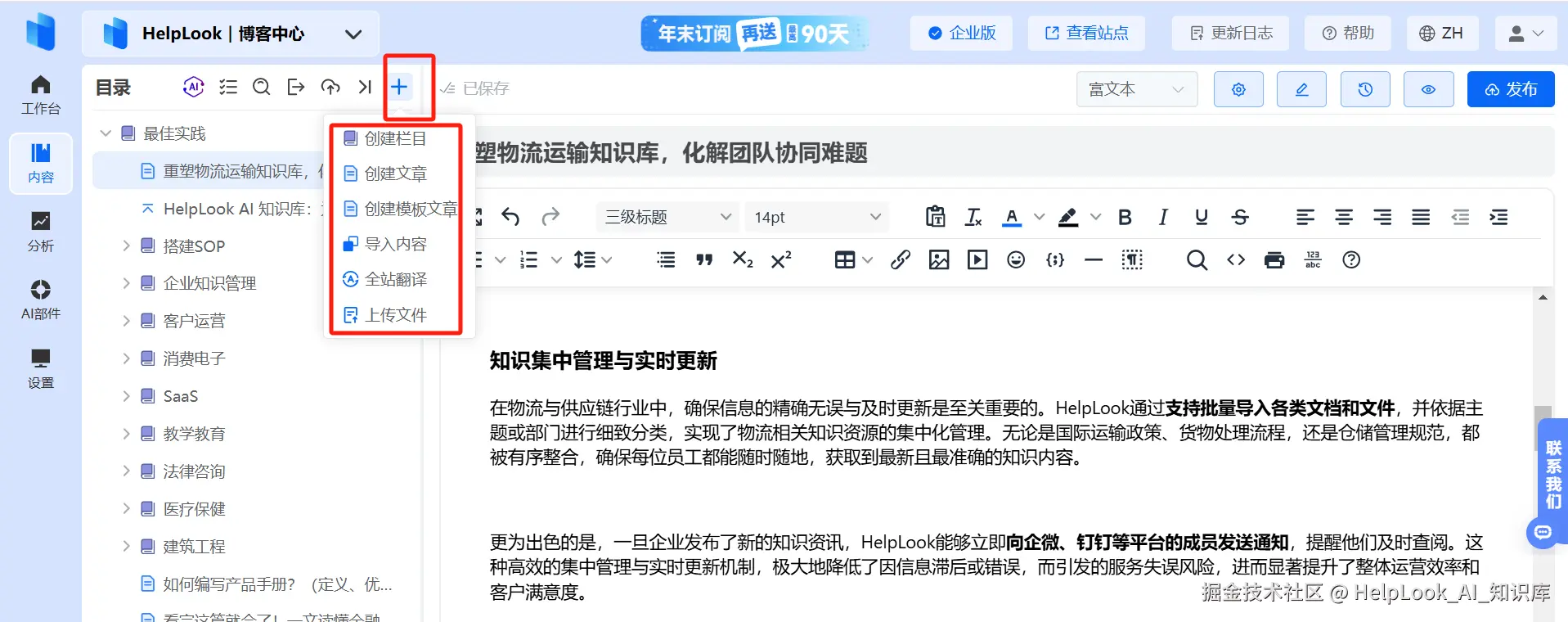 这一功能不仅适用于企业博客,展示多语言客户案例,吸引国际客户;更适用于搭建多语言帮助中心,为不同国家和地区的内部员工及外部合作商提供专业培训,助力企业内外团队紧密合作,全面提升国际业务的处理能力和效率。