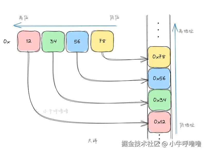 那么多个字节依次存到内存中,就会有顺序,这个叫字节序Endianness, 也被称为端序, 就是 大于一个字节类型的数据在内存中的存放顺序