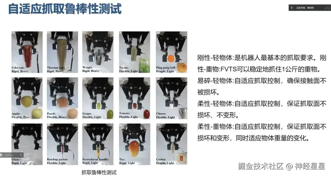 如下图所示,不同物体的抓取测试表明,我们提出的 two-stage 自适应抓取策略具有高度的鲁棒性,能够在各种多属性物体上实现稳定可靠的抓取操作。