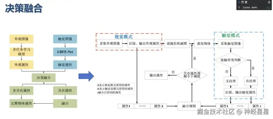 总结来说,我们在视觉模式下获得透明物体的外观属性,在触觉模式下获得其纹理或温度属性,接下来,就可以用决策融合的方式将这两种模式得到的属性融合,共同作用于透明物体识别,比如,我们的方法将玻璃杯视触觉识别准确率达到了 99% 以上。