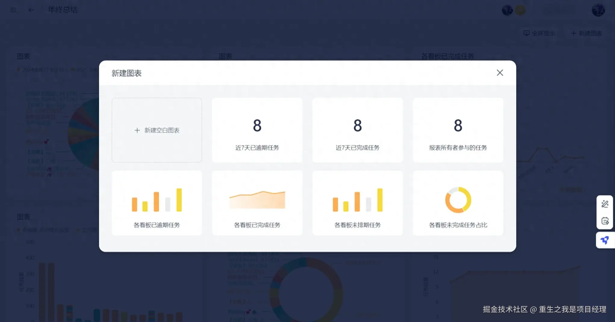 根据不同的项目类型或团队需求,自由调整仪表盘的内容和布局。