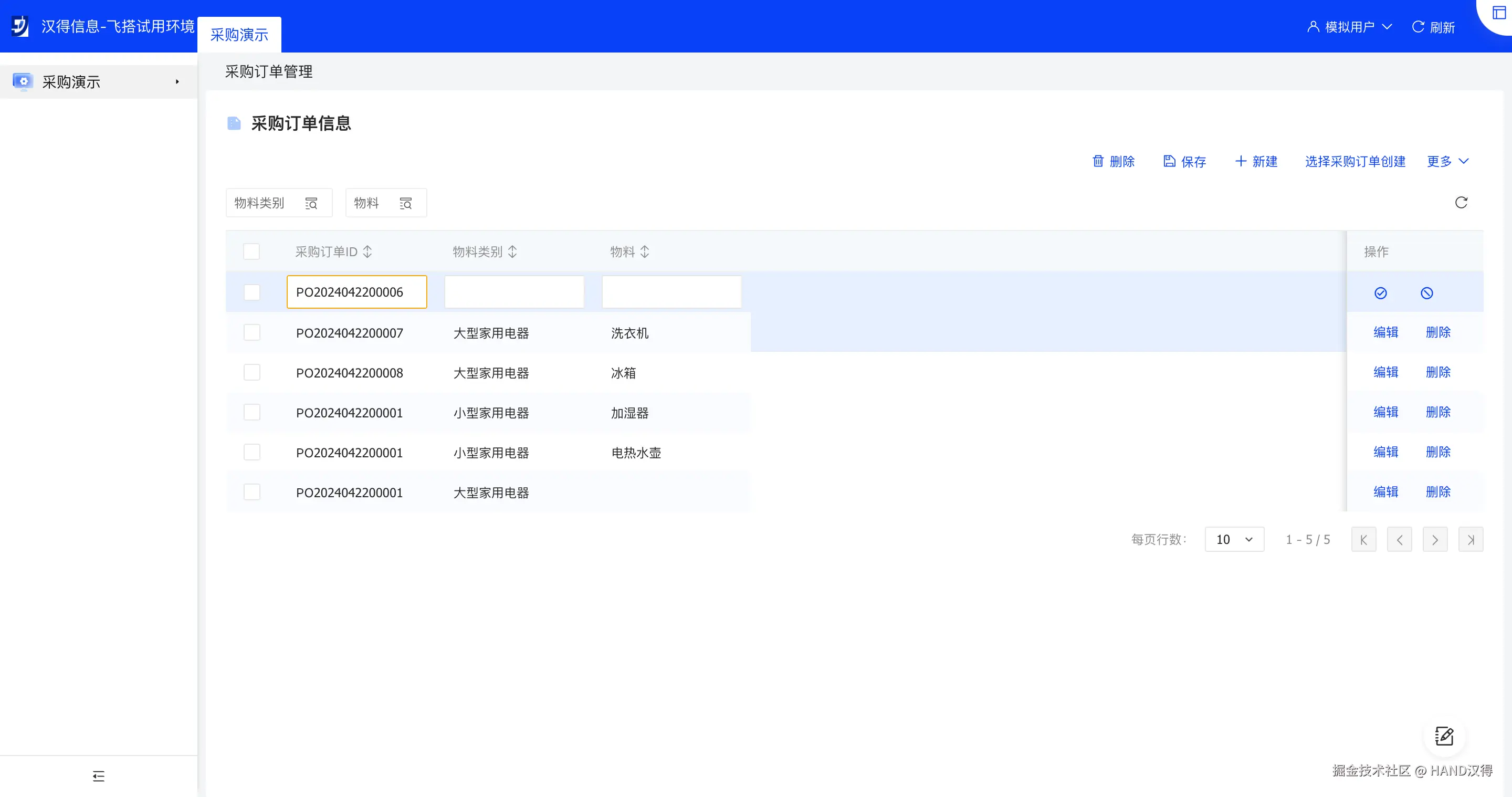 采购订单信息列表新建数据,根据默认值的设置为采购订单ID字段生成默认值。