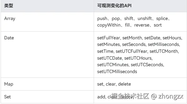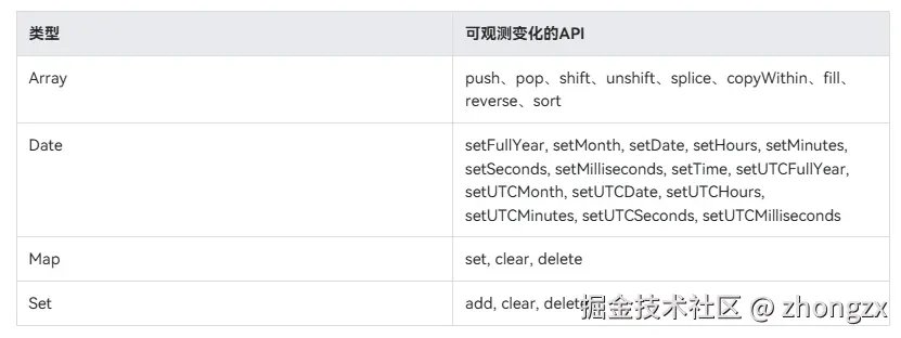 - 当装饰简单类型时,对变量的整体改变能够观测到;当装饰对象类型时,仅能观测对象整体的改变;当装饰数组类型时,能观测到数组整体以及数组元素项的改变;当装饰Array、Set、Map、Date等内嵌类型时,可以观测到通过API调用带来的变化。