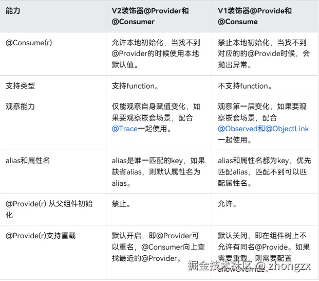 和V1版本中的@Provide和@Consume有异曲同工之妙,主要用于跨组件层级数据双向同步,但也存在不一样的能力: