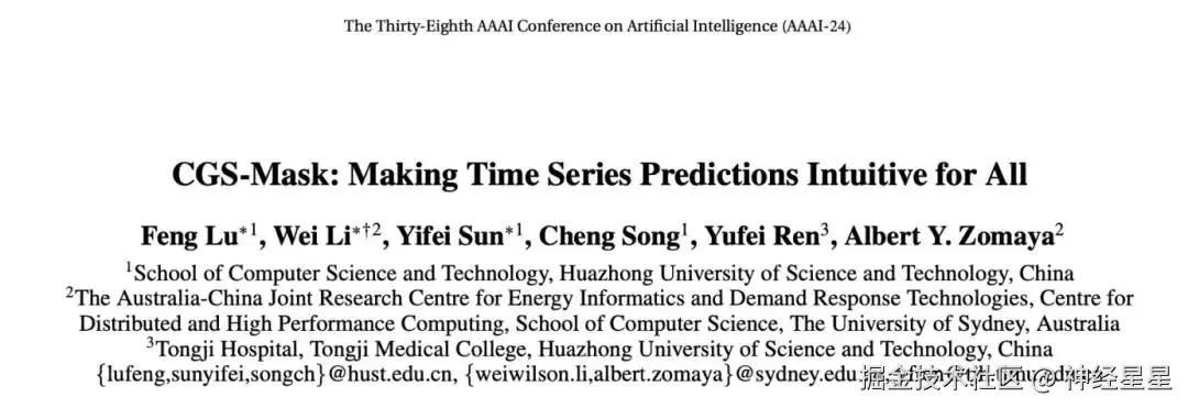 研究内容: 华中科技大学联合悉尼大学、同济医院等,提出 CGS-Mask 方法,该方法适用于各种时间序列预测任务,尤其是那些需要与用户互动并解释结果的场景,例如,股市预测、疾病预测和天气预报等,既能提高模型预测精度,又能增加预测结果的可解释性。