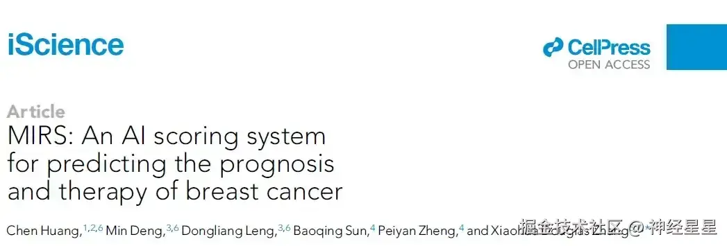 研究内容: 美国肯塔基大学、澳门科技大学、澳门大学、广州医科大学第一附属医院的研究人员采用神经网络模型,建立了一个预测乳腺癌预后和治疗的评分系统 MIRS,可用于指导乳腺癌患者治疗策略的制定。