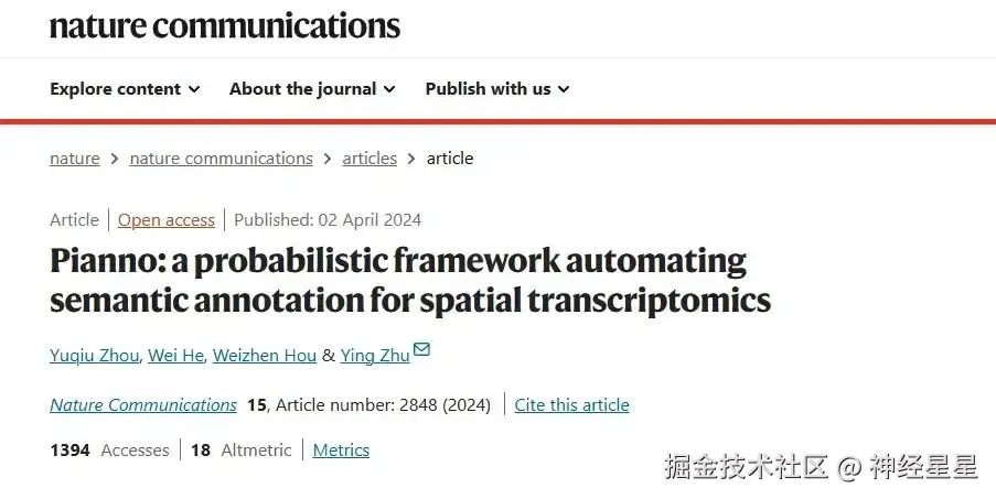 研究内容: 复旦大学团队提出了「空间转录组语义注释」概念,并开发了空间转录组语义注释工具 Pianno,能够为组织内的空间点自动定义结构或细胞类型,从而结合来自多个维度的信息,加强对复杂生物系统的解释。