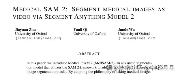 研究内容: 牛津大学团队开发 Medical SAM 2 (MedSAM-2) 医学图像分割模型,基于 SAM 2 框架设计,将医学图像视作视频,不仅在 3D 医学图像分割任务上表现卓越,同时还解锁了一种新的单次提示分割的能力。