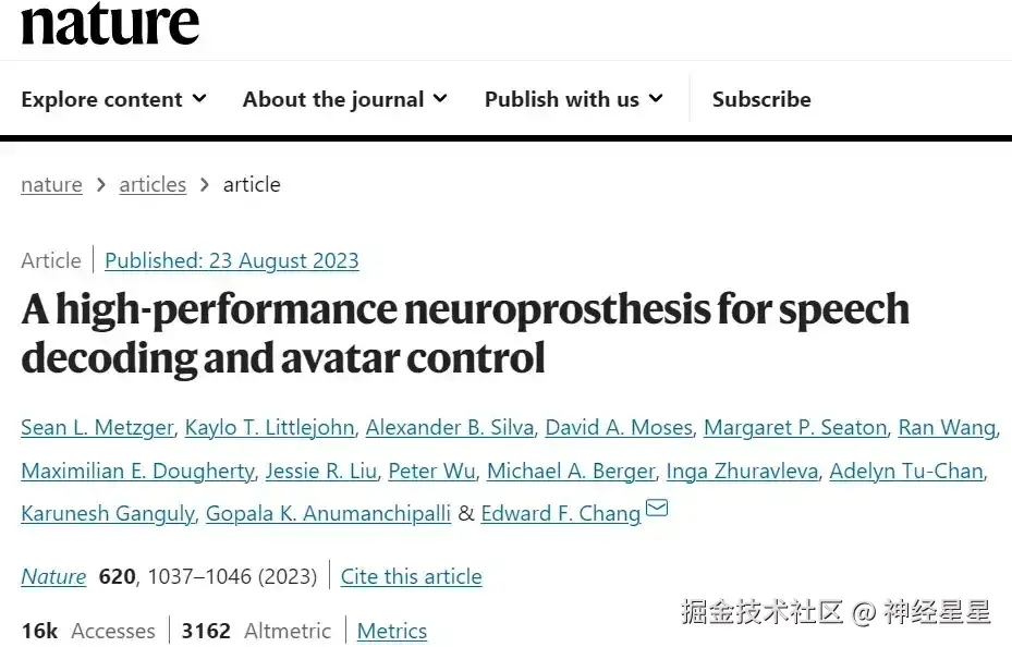 31 论文题目:A high-performance neuroprosthesis for speech decoding and avatar control, 2023.08