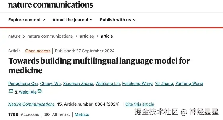 03 论文题目:Towards building multilingual language model for medicine, 2024.09