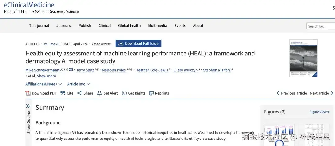 研究内容: Google 团队开发了 HEAL (The health equity framework) 框架,能够定量评估基于机器学习的医疗健康方案是否「公平」。