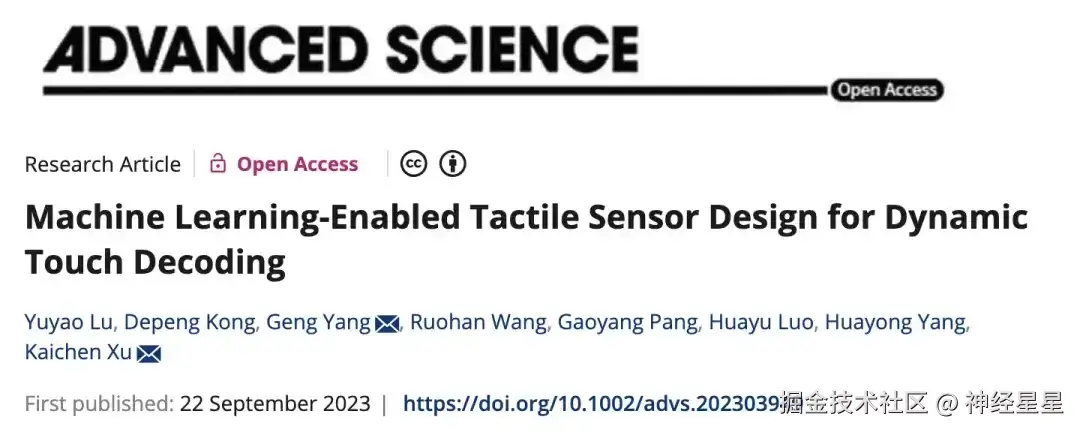 35 论文题目:Machine Learning-Enabled Tactile Sensor Design for Dynamic Touch Decoding, 2023.09
