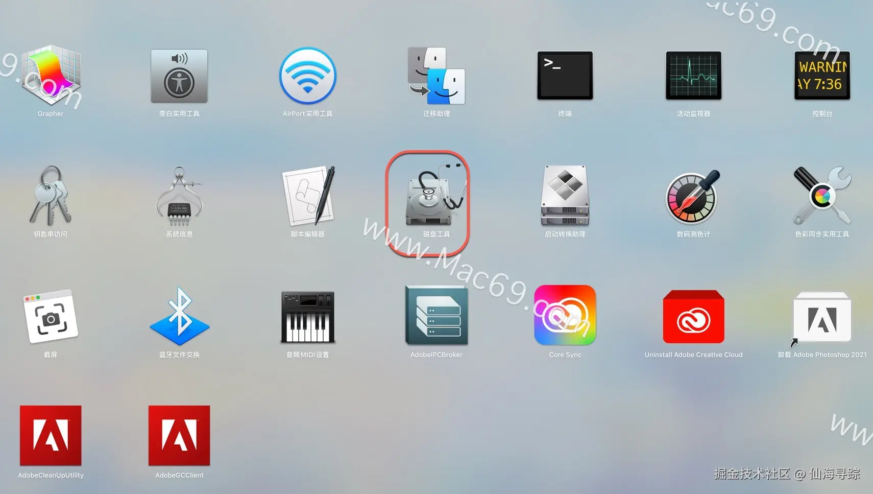 2、选择磁盘工具并打开