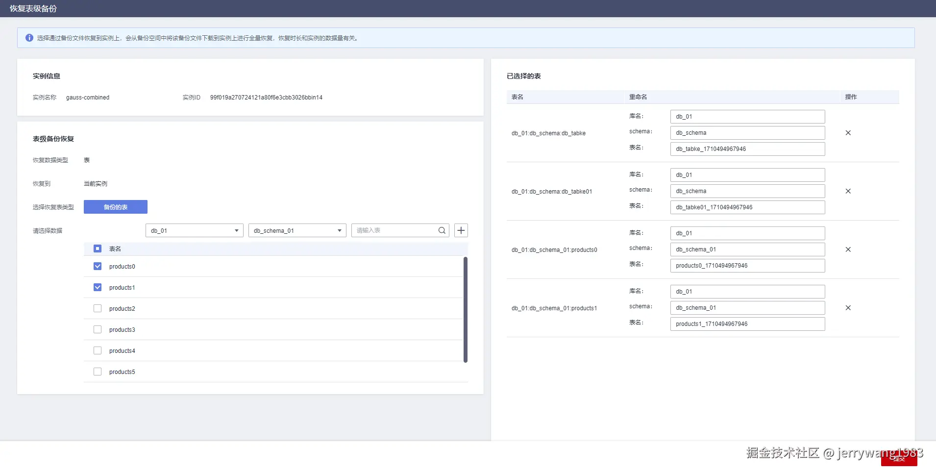 图1 恢复表级备份到当前实例