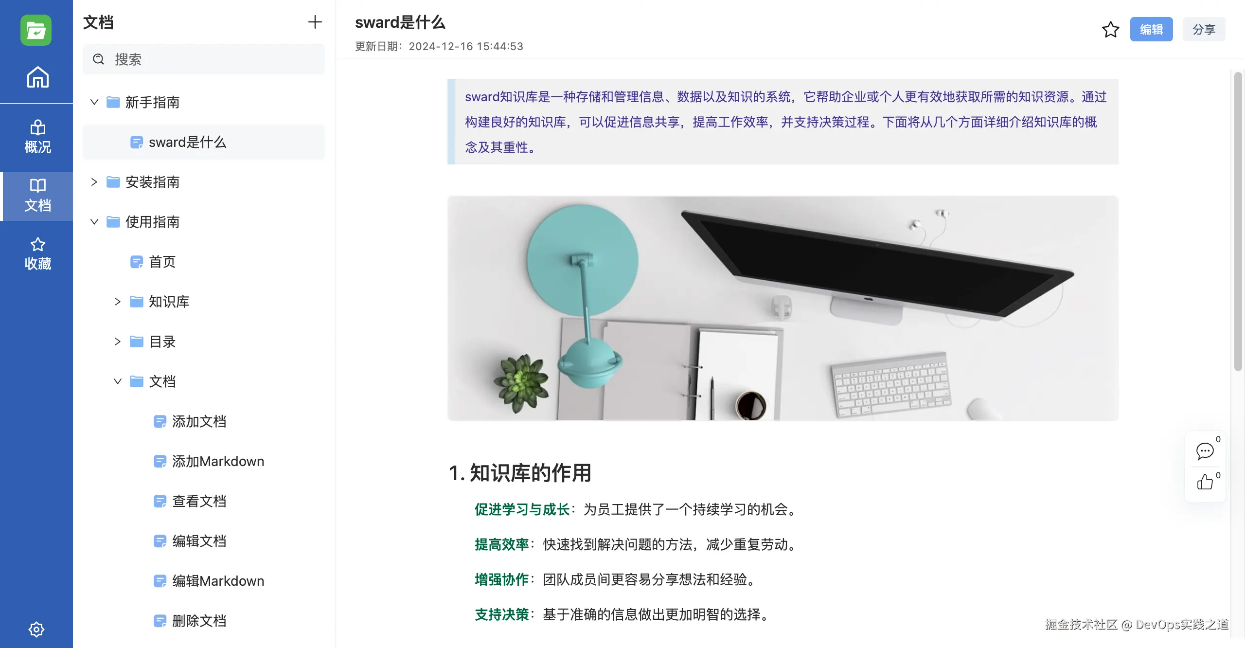 知识库管理软件是一种用于创建、组织、存储、维护和提供访问知识库的软件系统。常用的知识库软件有confluence,语雀,有道笔记等,我今天推荐一款开源免费、简洁易用的知识库管理工具 - sward。我们先通过以下的功能介绍和优势介绍来初步了解一下sward。