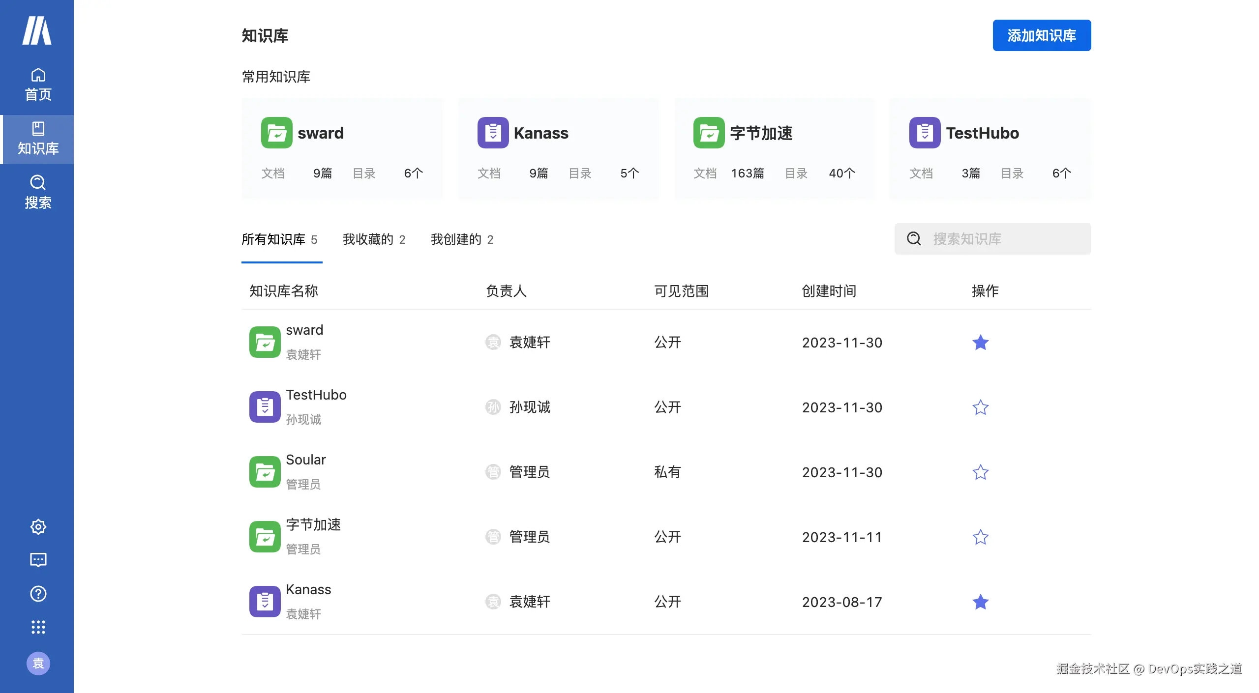 不常用的知识库可以归档起来,不在列表中展示,便于常用文档的查找。