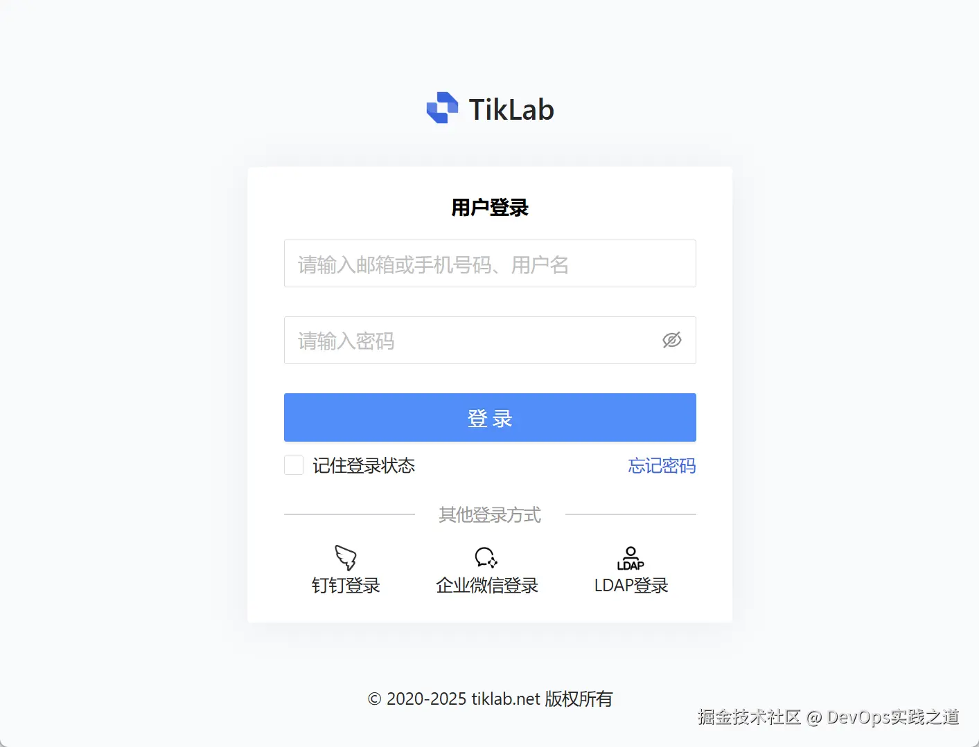 默认支持通过账号密码登录,满足基础登录需求。若需要使用企业微信、钉钉或 LDAP 等高级登录方式,可参阅TesHubo文档获取相关配置说明。