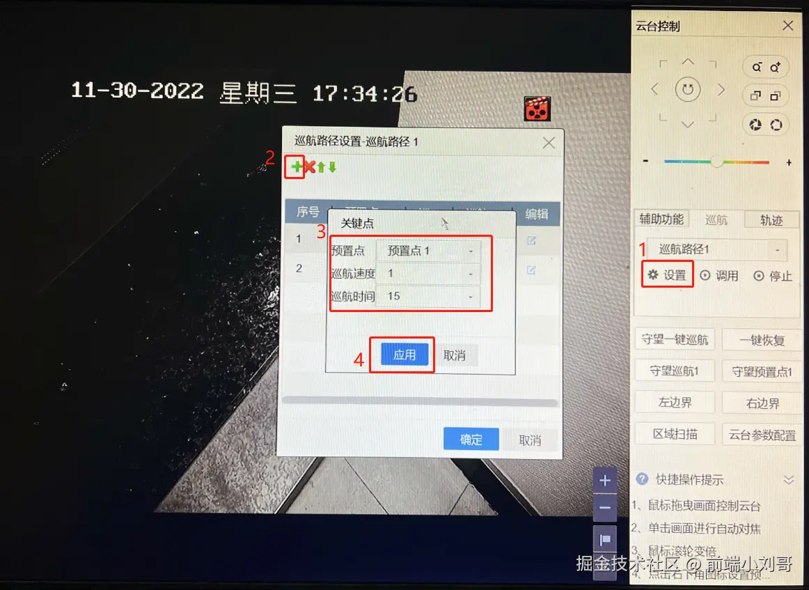3、重复上述步骤,依次设置所需的巡航点(预置点),即可完成巡航路径设置。