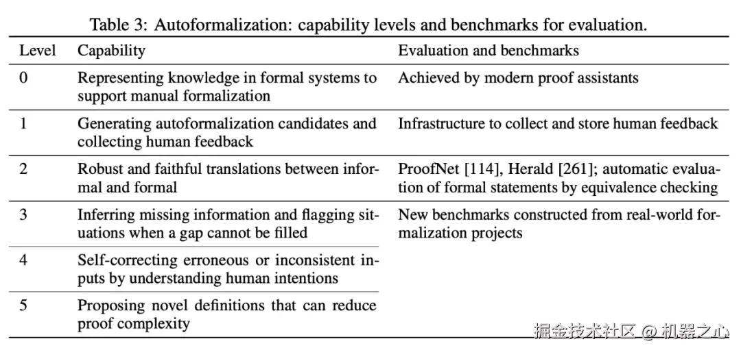 根据表 3,在最基础的 0 级水平,AI 系统能够存储和检验形式化知识,方便人工形式化。