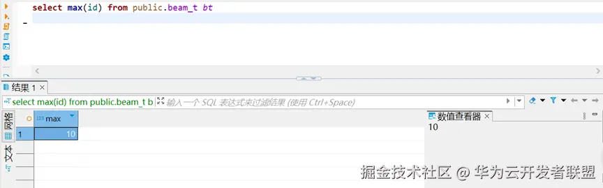 对比max1和max2发现前后最大值有变化,可以验证Beam计算引擎是可以连接GaussDB并读取数据以及向GaussDB写入数据的
