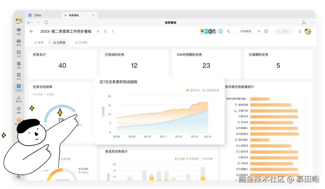 - 优势:操作简单、界面友好,尤其适合中小型团队;支持深度的任务分解与关联;提供强大的统计和报表功能,帮助团队实时掌握项目动态。
