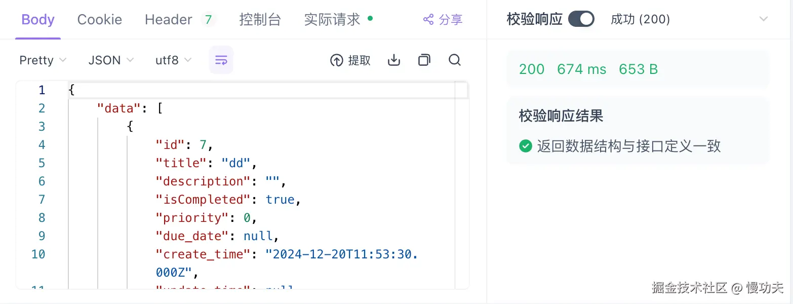 这就是 Apifox 调试体验,是不是非常棒。Apifox 将接口文档和调试工具合为一体,这不仅对后端开发是个趁手的工具,对前端开发也是很方便的