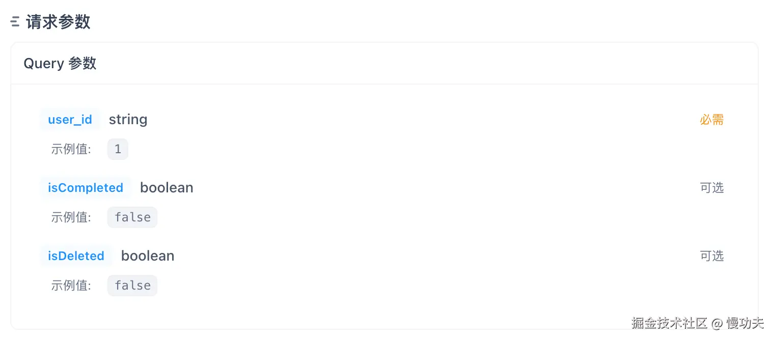在 Apifox 中, query 的参数介绍是这样显示的: