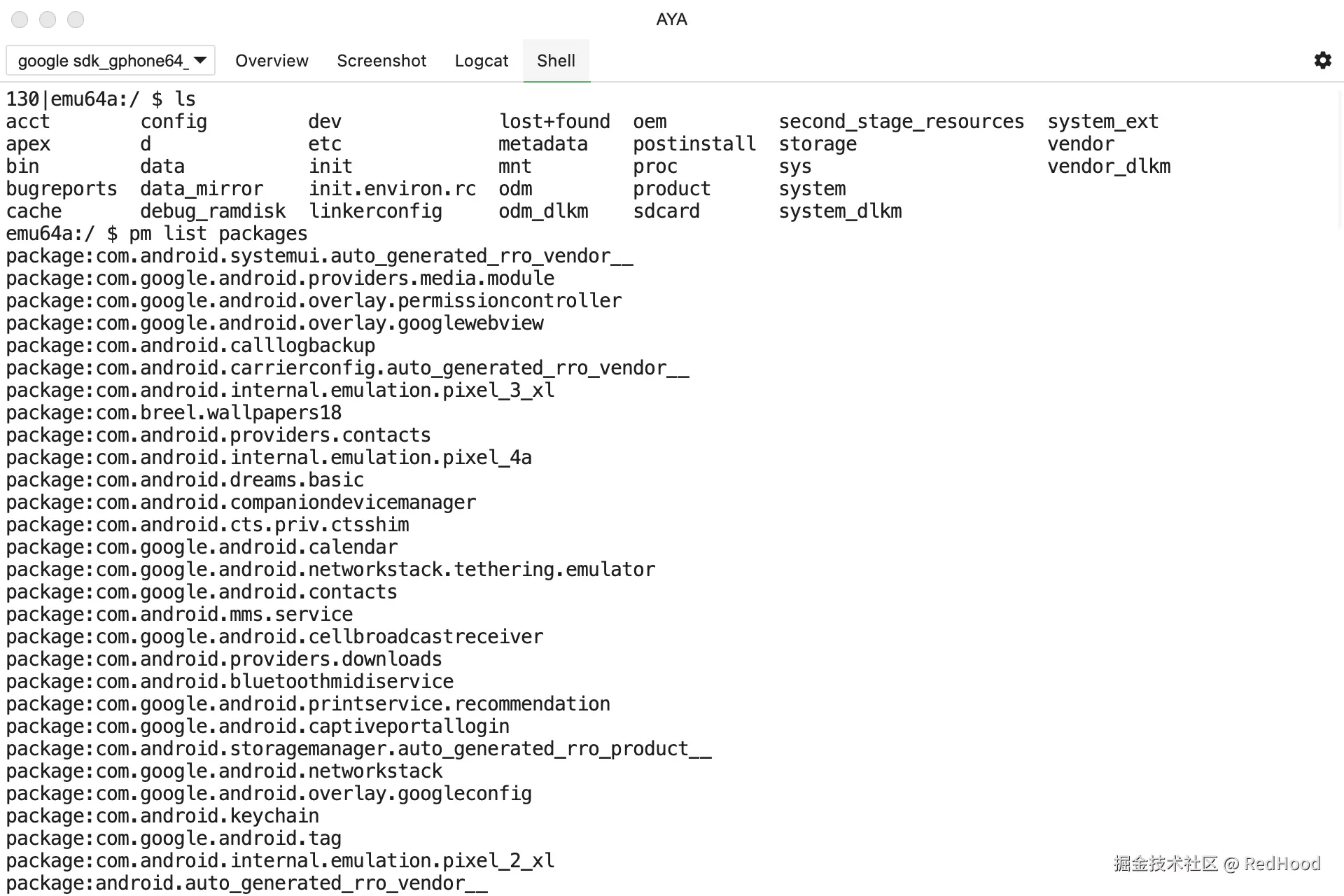 终端面板功能与 adb shell 一样,能够执行 shell 命令并查看其输出。