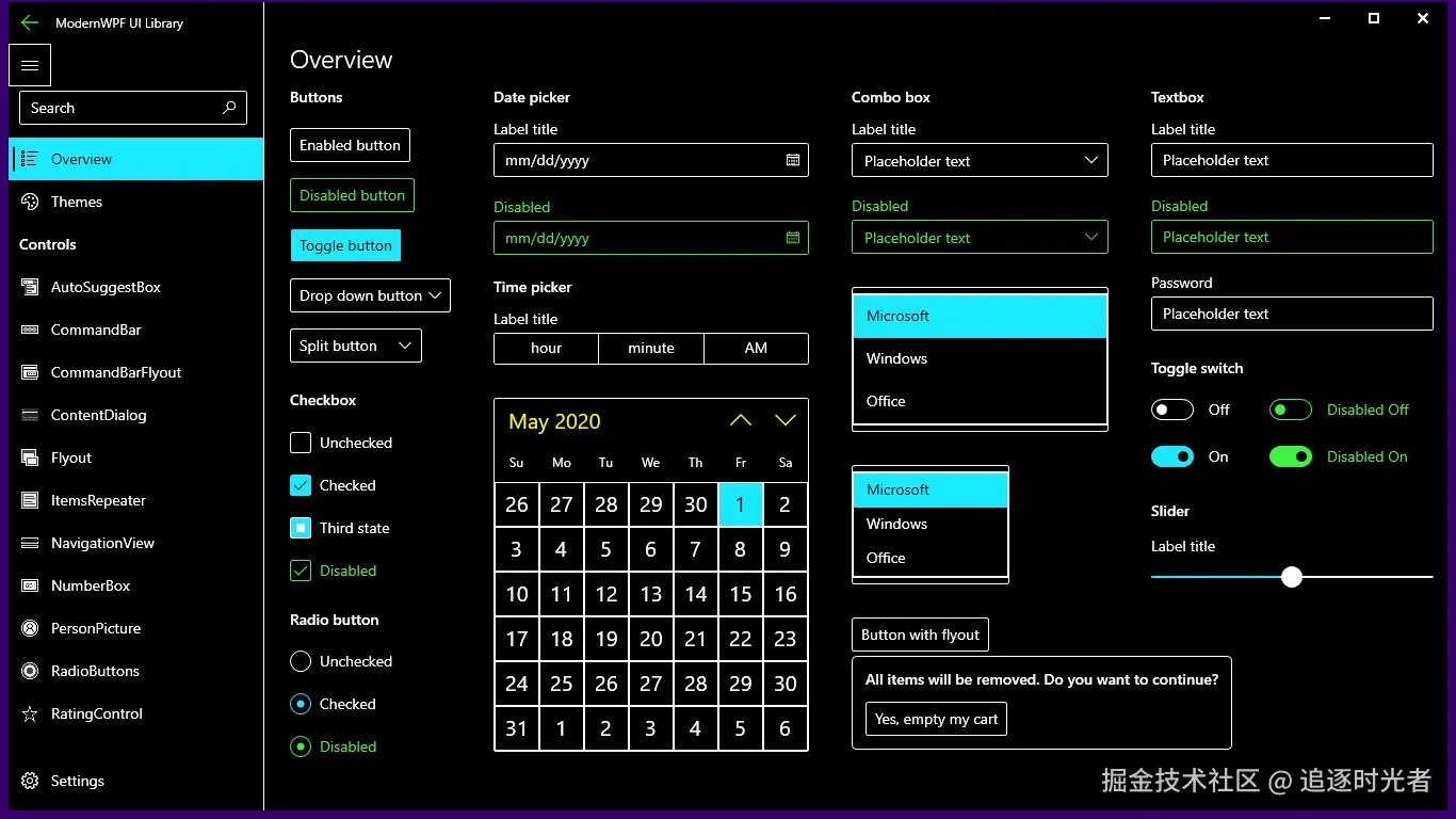 - 现代化的样式和新特性,适用于大多数标准的 WPF 控件。