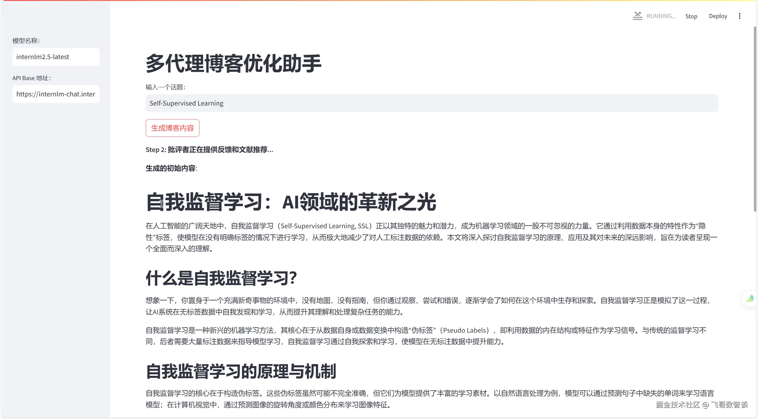 step3_placeholder.markdown(f"**最终优化的博客内容**:\n\n{message.content}")