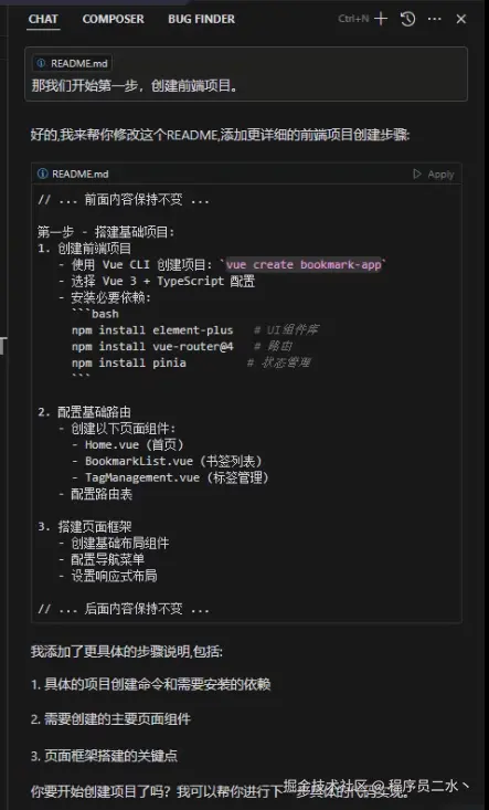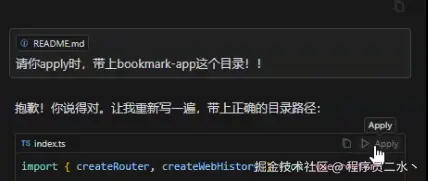使用前端命令创建项目,会在当前目录下新增一个目录。但是AI执行Apply的时候,总是忽略了新建的目录,直接在当前目录下,找到错误的文件地址应用代码。