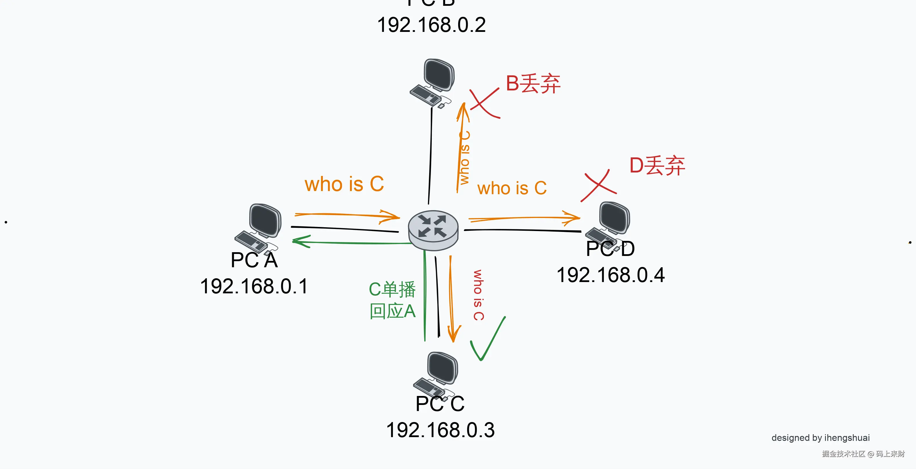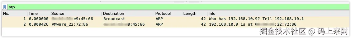- 当每个主机接收到arp请求后发现目标ip不是自己,就会丢弃掉arp数据包,不做任何回应
