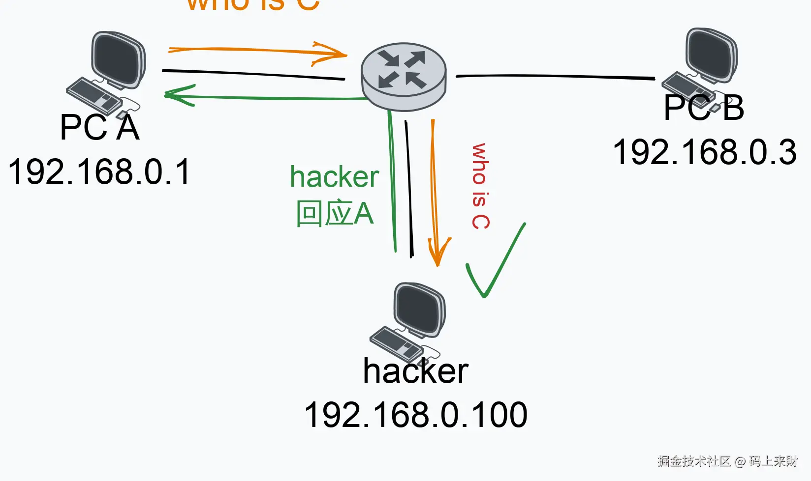 ARP欺骗示意图: