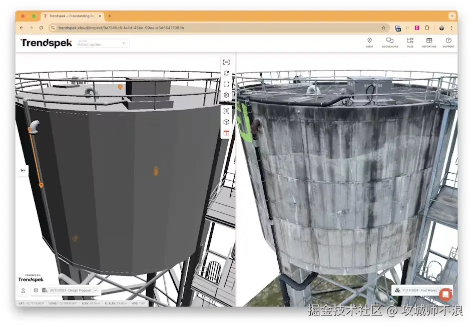 Trendspek 能够快速将 BIM 作为 3D Tiles 与现实捕获模型一起整合到他们的检查应用中,应该使用 CesiumJS。