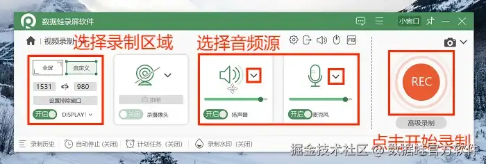 第二个给大家介绍的是数据 蛙录屏软件,数据 蛙录屏软件凭借其强大的音频录制功能、自定义录制参数、无水印录制以及一站式剪辑等优势,成为了解决录屏为什么没声音的优选方案。如果你正在寻找一款好用的录屏软件,不妨试试数据 蛙录屏软件吧!