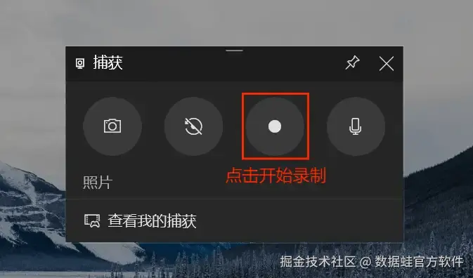 步骤1: Xbox Game Bar提供了快捷键功能,你可以通过按下 “Win+G” 来唤出Xbox Game Bar的页面,然后找到 “捕获” 按钮并点击。