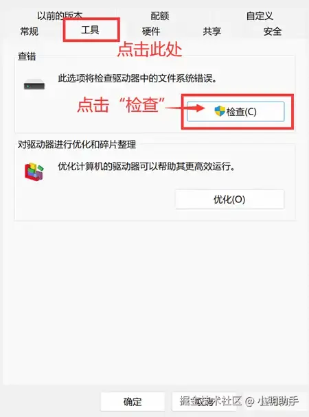 妙招二:使用“磁盘检查”功能协助硬盘数据恢复