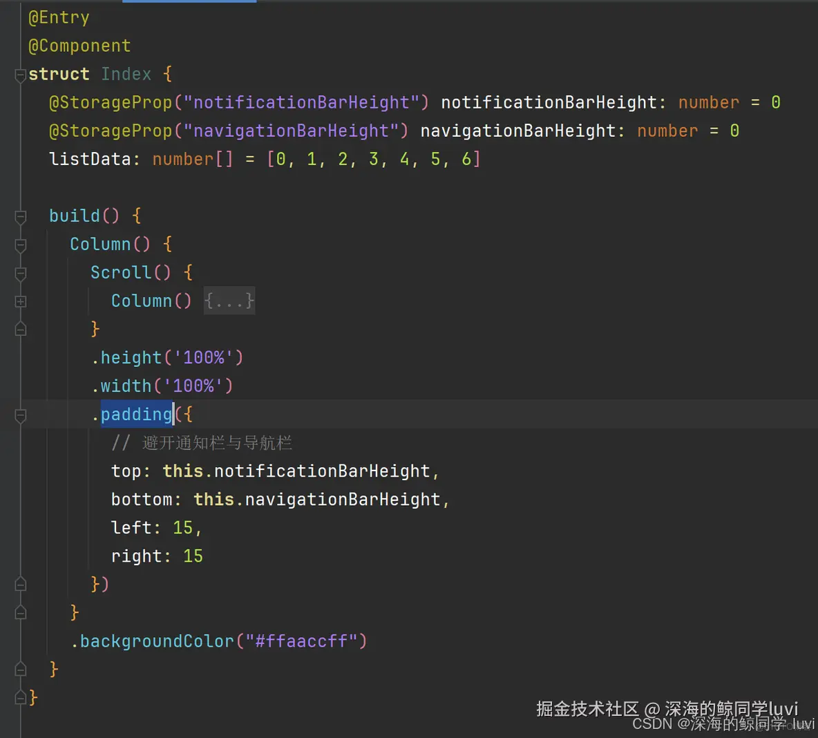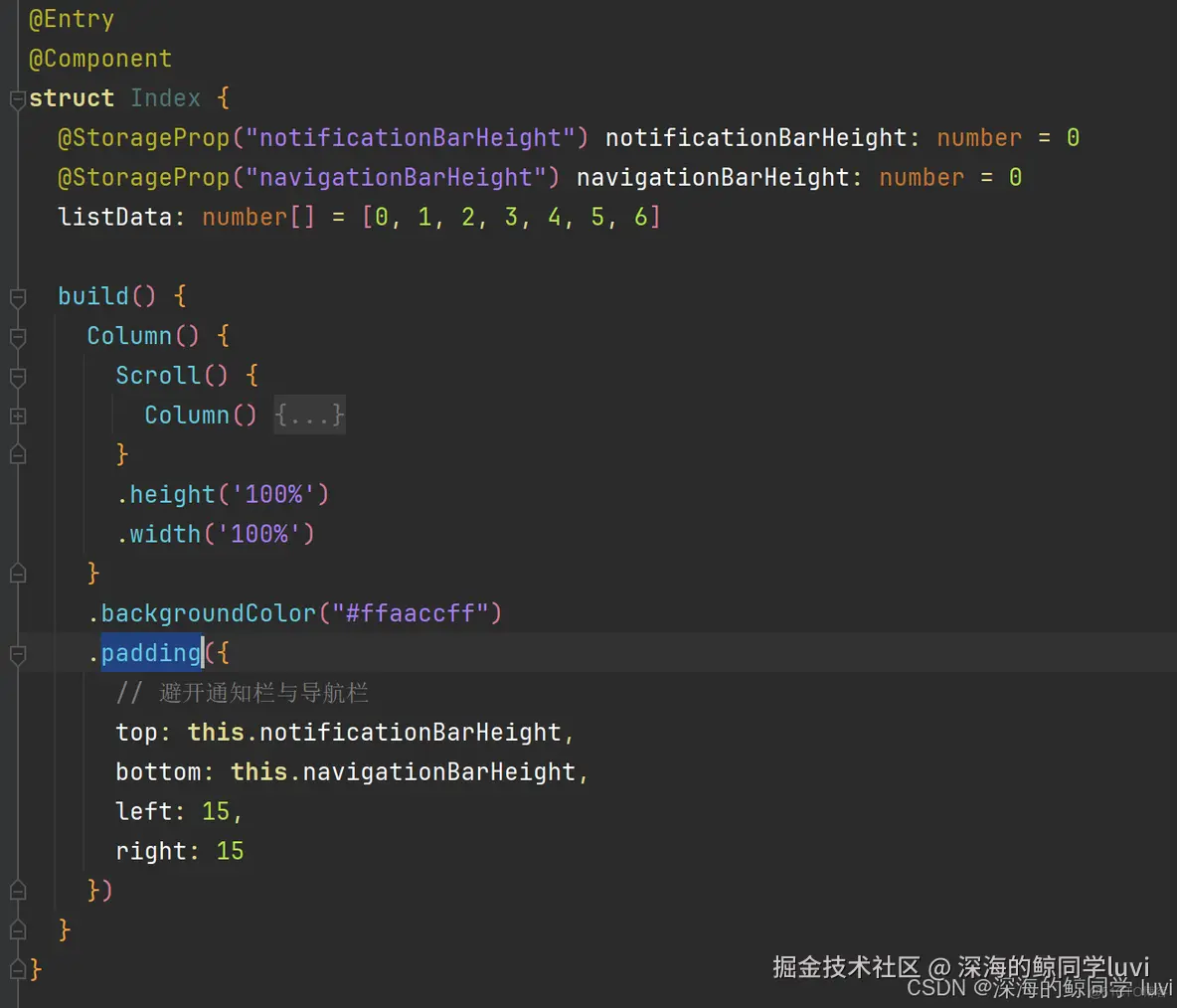 使用 getWindowAvoidArea 获取通知栏与导航栏高度并利用 AppStorage 保存,供后续页面避开该区域使用。需要注意的是:获取到的高度为 px 像素单位,须在保存或使用时进行 px2vp 单位的转换。