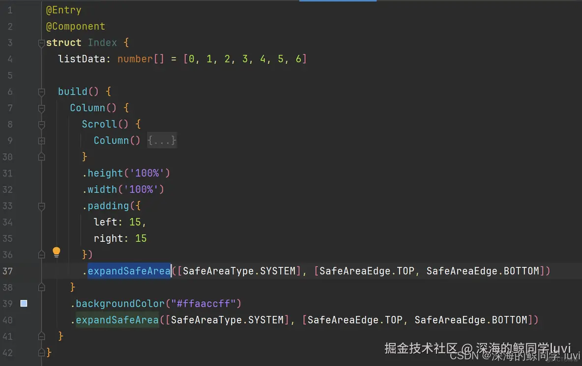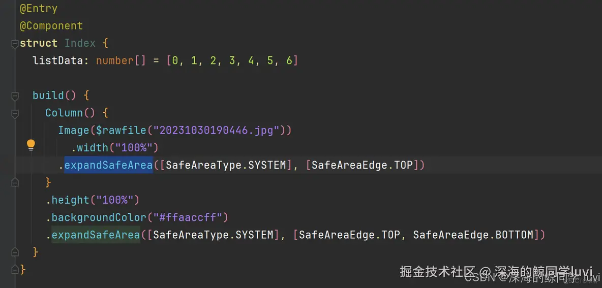 方案二 设置安全区域 expandSafeArea 属性达到沉浸式