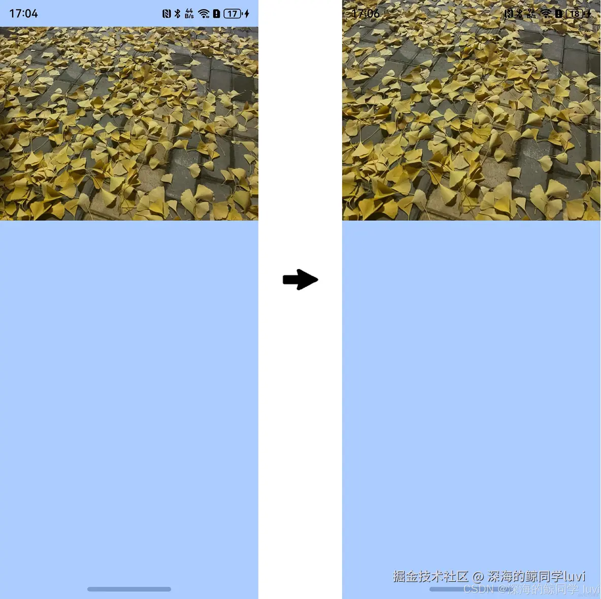 针对于图片或视频内容,我们对页面安全区进行延申后,图片还是距离屏幕顶部存在状态栏的高度,同理,我们只需要给 Image 组件设置向上延申安全区的效果即可。