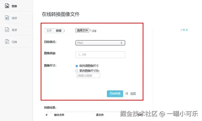 • 选择格式:图片上传之后,选择图像格式为【png】格式,然后点击【开始转换】。
