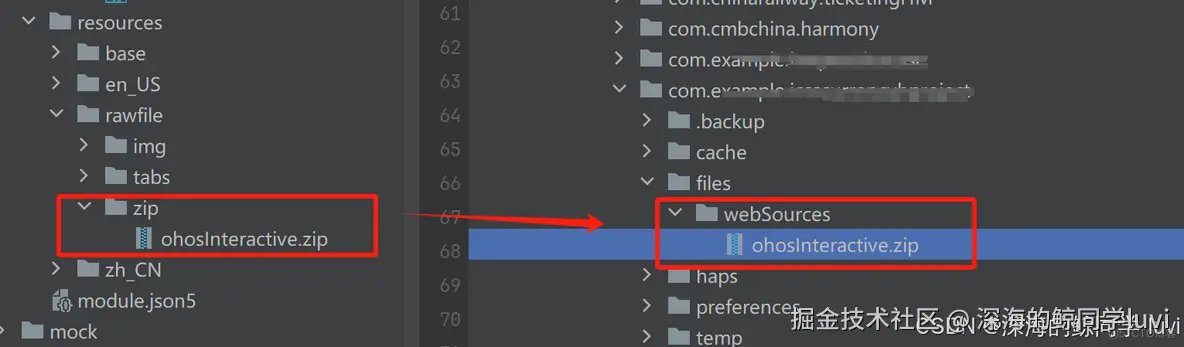 解压zip文件到 webSources 下,因为涉及到文件加载需要一段时间,所以此处的解压建议放到ability生命周期中进行,不建议在页面需要加载时进行解压。