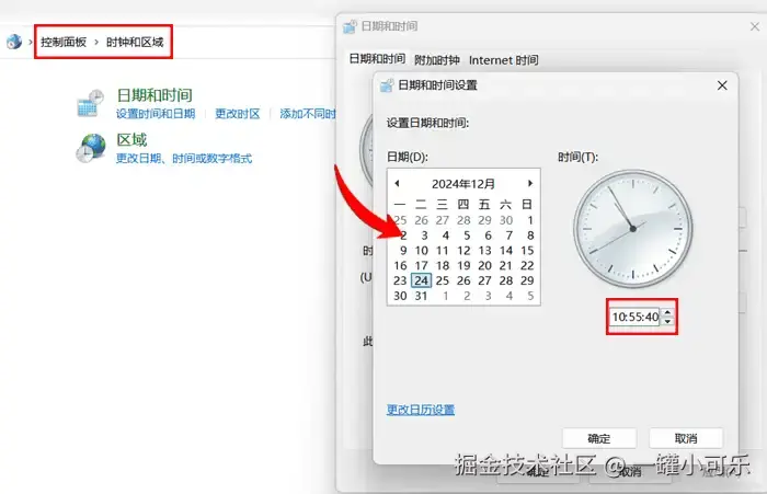 同步电脑时间的方法三:在控制面板中校准时间