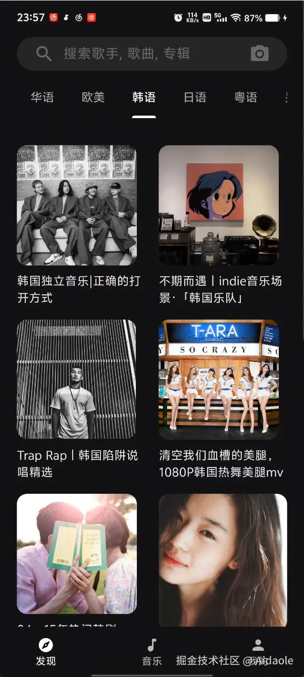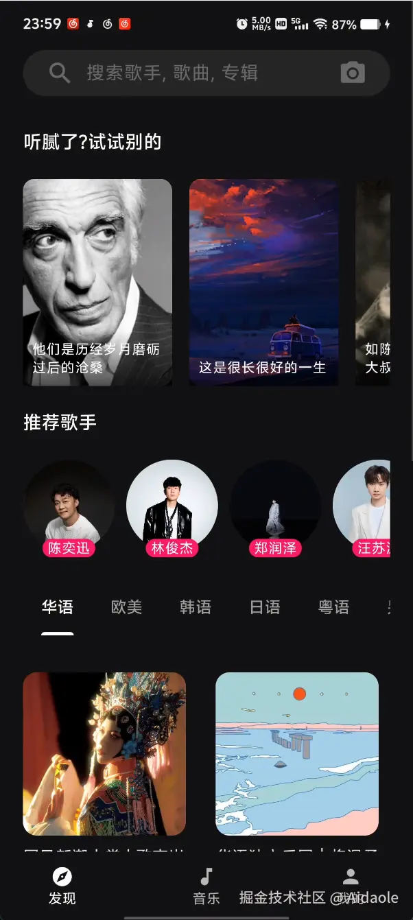 - 发现页面,热门歌单, 热门歌手, 推荐歌单等