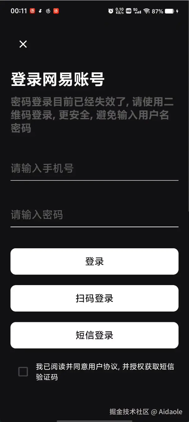 登录相关, 账号密码登录(失效), 验证码登录(失效), 二维码登录(可用, 使用网易云音乐扫描二维码登录)