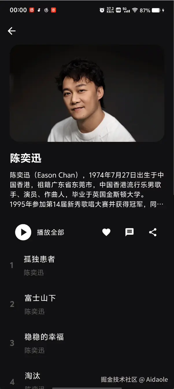 一款音乐app,交互模仿汽水音乐。github地址